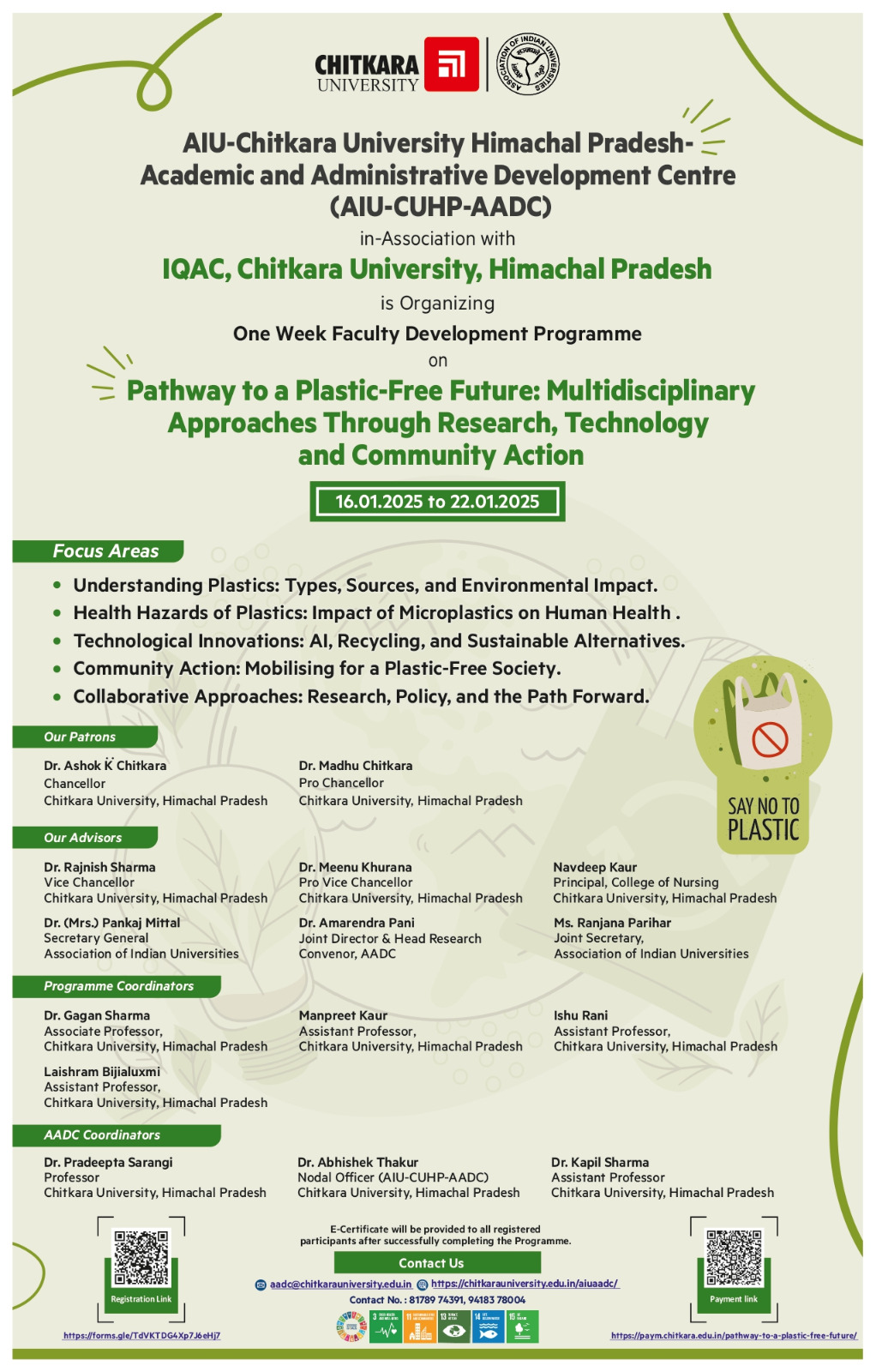 | 1 | Chitkara University, Himachal Pradesh | One week FDP on “Data-Driven Healthcare Practices: Improving Diagnosis and Treatment | 10-16 March 2026 | Brochure |
