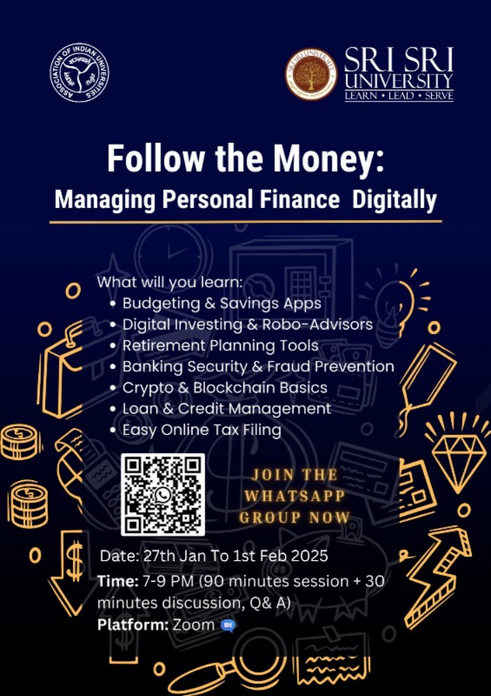 | 1 | One-Week Online Faculty Development Programme (FDP) on “Follow the Money: Managing Personal Finance Digitally” | 27th Jan to 1st Feb 2025 7-9 PM (Online) | Link Flyer |