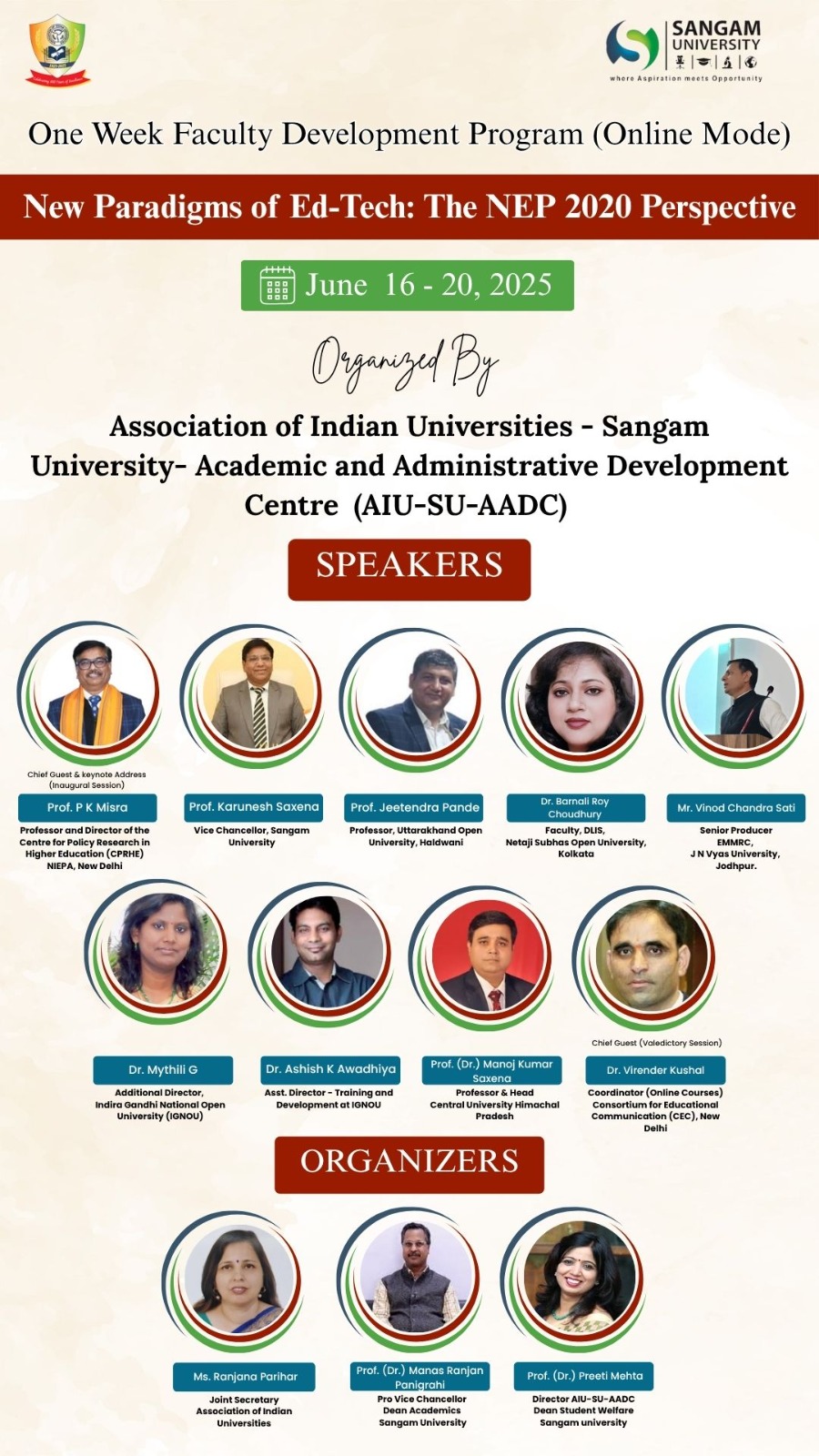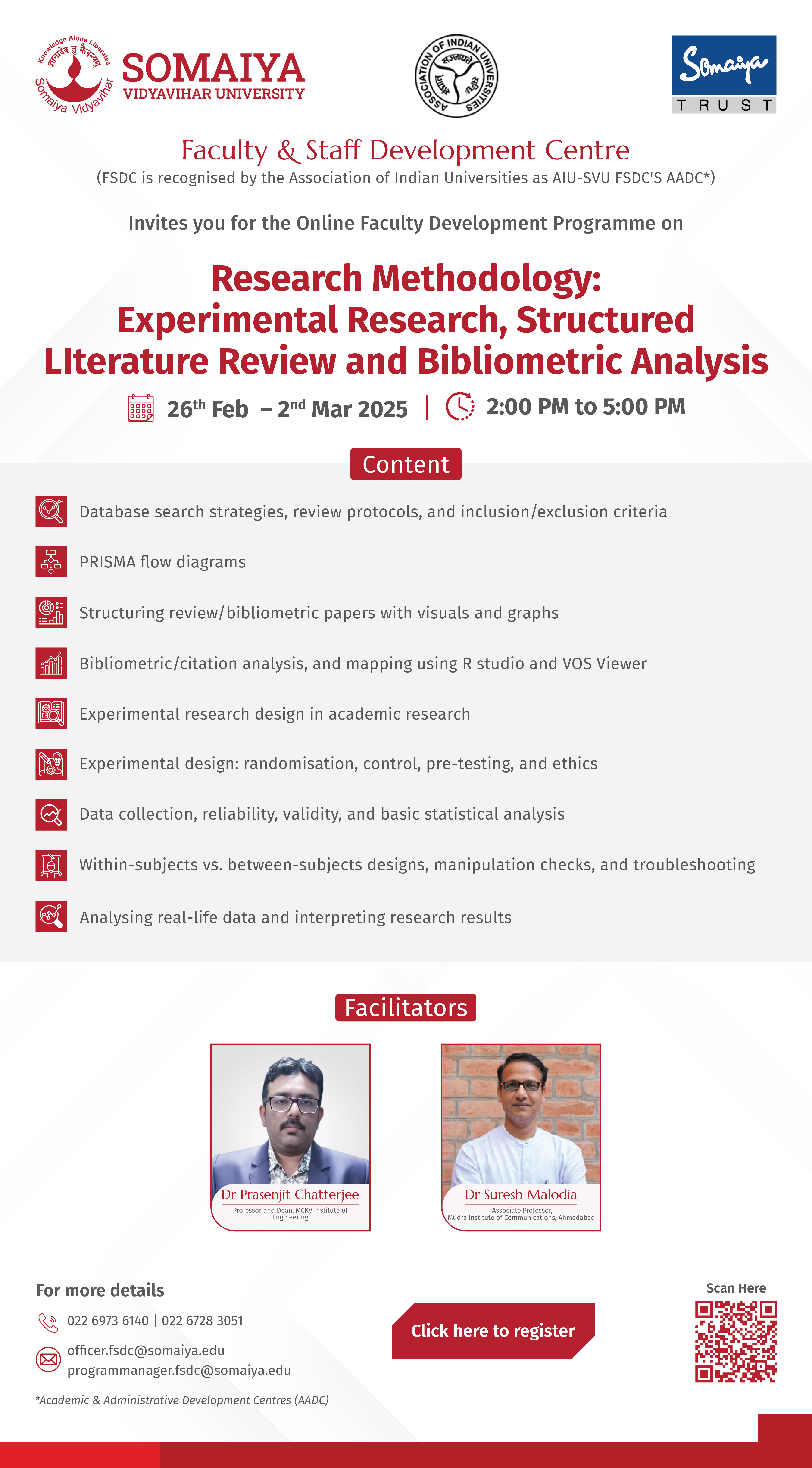| 5 | FIVE-DAY ONLINE FACULTY DEVELOPMENT PROGRAMME ON ACADEMIC WRITING | 13th to 17th May, 2025 Time: 03:00 PM – 05:00 PM | Brochure Registration Link Report |