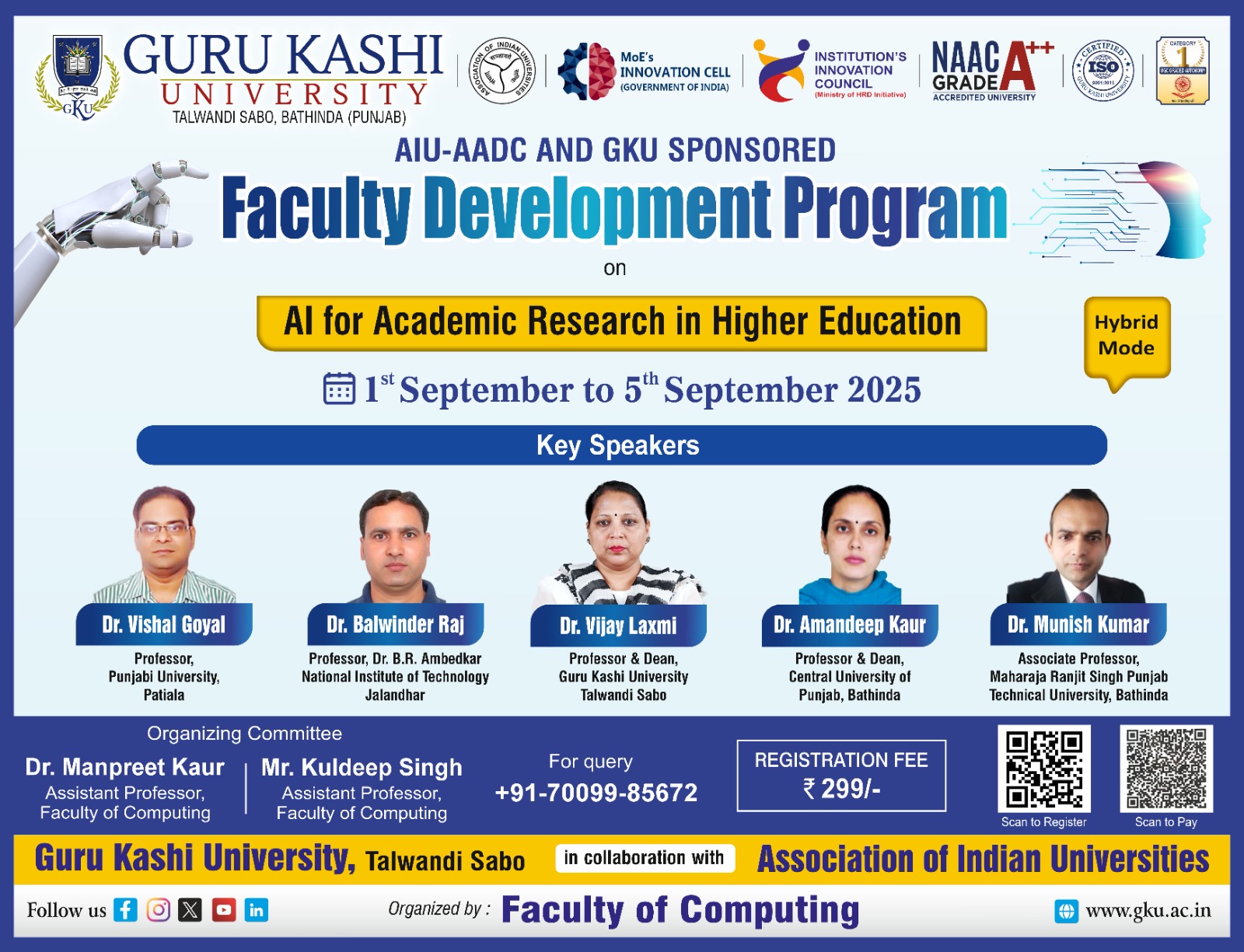 | 1 | Guru Kashi University, Bathinda | FDP on AI for Academic Research in Higher Education | 01.09.2025 to 05.09.2025 | Schedule Flyer |